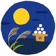 日本ではお団子、お餅、ススキ等をお供えしお月様を眺めることをお月見